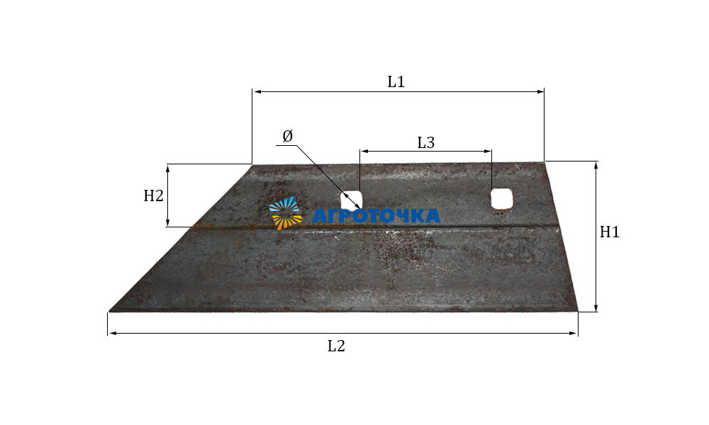 Лемех плуга (L=310мм, l=196мм, между отв = 85мм) ПЛУГ 1L-220/320/420